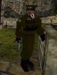 Diese Wache trägt eine einzelne Handfeuerwaffe und kann sich hinter Erhöhungen ducken um Lara aus der Deckung unter Beschuss zu nehmen.
