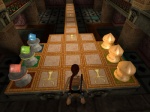 In einer Nische über dem Spielbrett findet Lara die Steuerung. Hier sind vier Stäbchen, die man drehen kann, sie können entweder weiss oder schwarz anzeigen. Diese dienen als Würfel. Die Anzahl der weißen Stäbe bestimmt den Wurf, sind alle schwarz, zählt es als sechs. Durch betreten der farbigen Plattformen bestimmt man, welcher Spielstein bewegt werden soll.